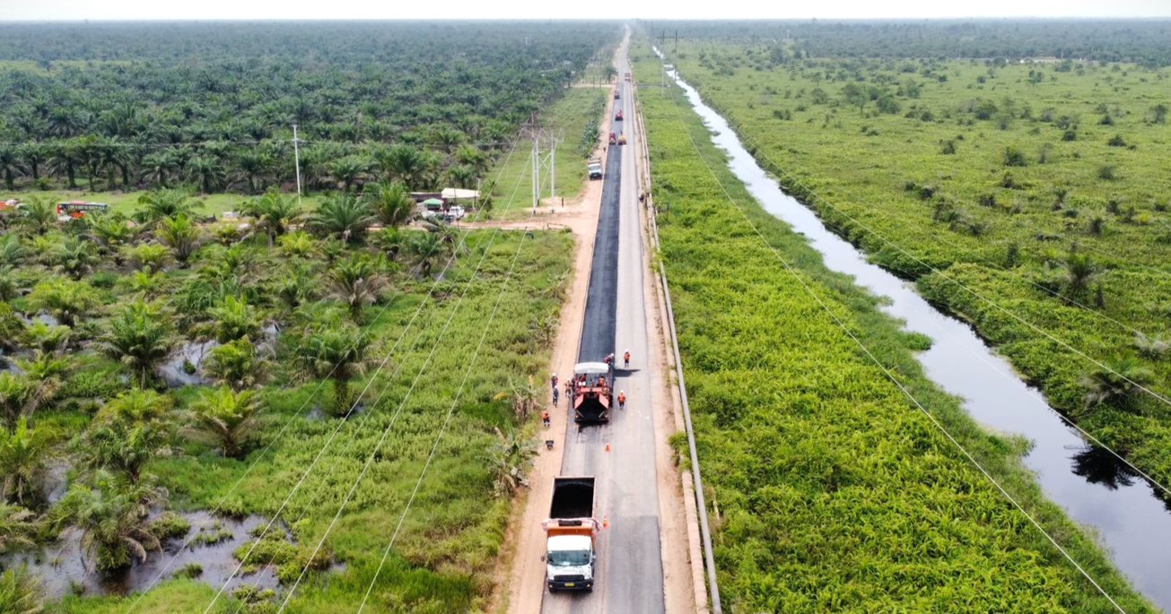 Jalan yang diperbaiki dengan pengaspalan tersebut sudah sepanjang 16 kilometer, yang merupakan akses utama bagi masyarakat di 5 kepenghuluan di 2 kecamatan, yaitu Kecamatan Bangko Pusako dan Kubu Babussalam, Kabupaten Rohil untuk akses menuju wilayah Kubu dan Pinang.