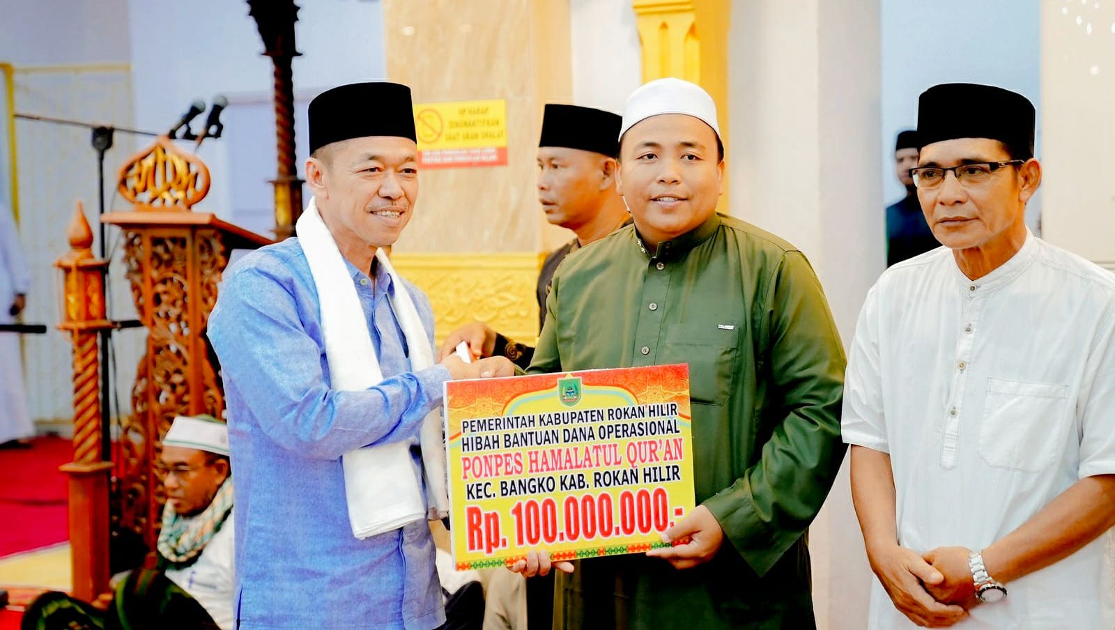 Dalam kesempatan itu, Bupati juga menyerahkan hibah bantuan dana operasional masjid dan mushola.